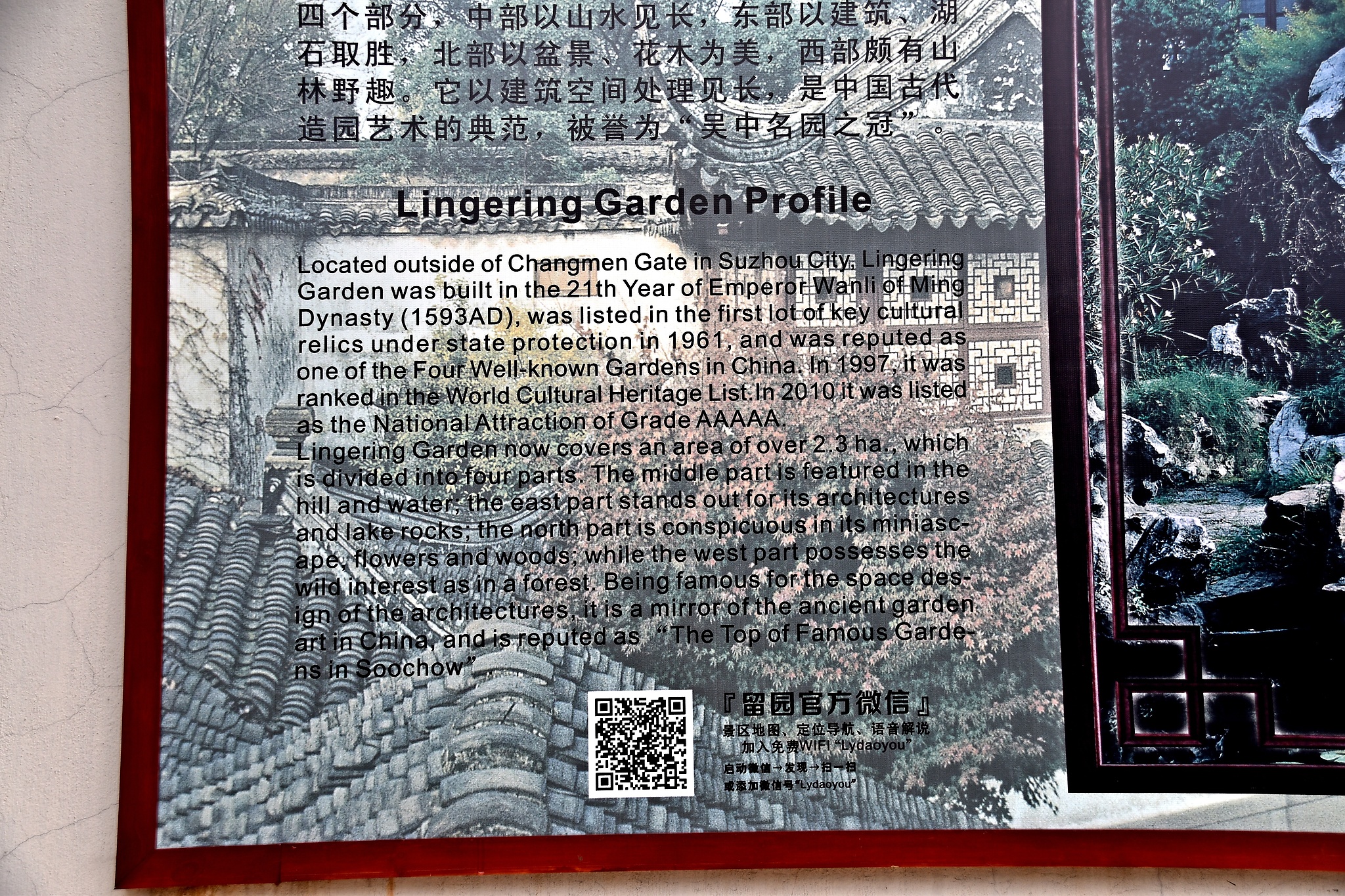 Der im Jahr 2000 als UNESCO Weltkulturerbe deklarierte Garten umfasst eine Fläche von 3,967m² und ist in einen östlichen und westlichen Bereich aufgeteilt. Aufgrund seines ästhetischen Designs, den klaren Kompositionen und der Einfachheit seiner Elemente, ist der Garten ein typischer Repräsentant der Ming-Dynastie.